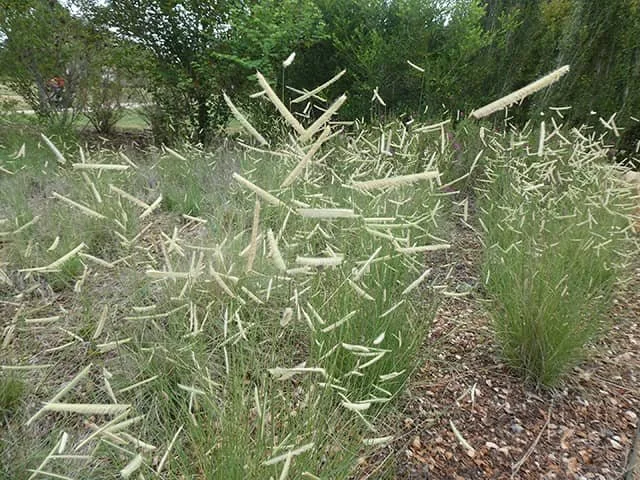 From CONPS: Description: The horizontal eyelash-like chartreuse flowers appear in mid-summer and age to blonde seed heads by fall. They are held on the plant right through the winter to provide many months of interest.